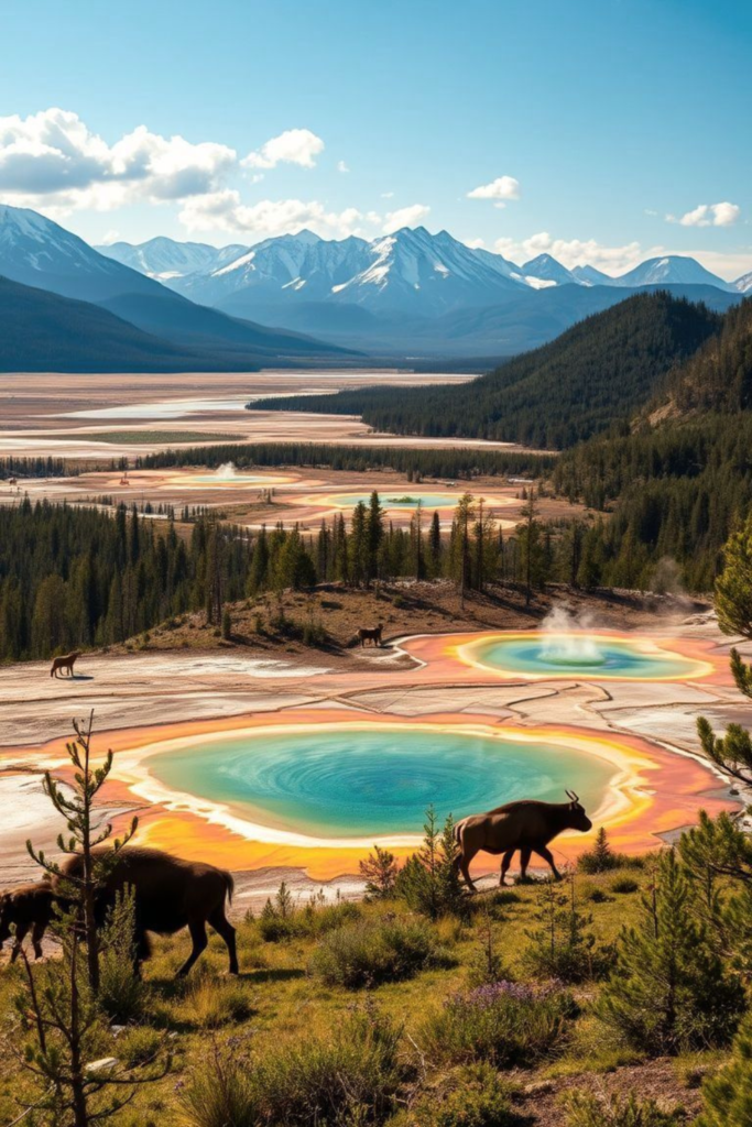 Wildlife such as elk, bears, and mountain goats roam freely through the park.