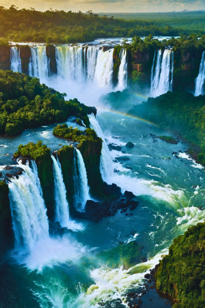 Millions of liters of water thunder over the cliffs every second, creating a powerful natural spectacle.