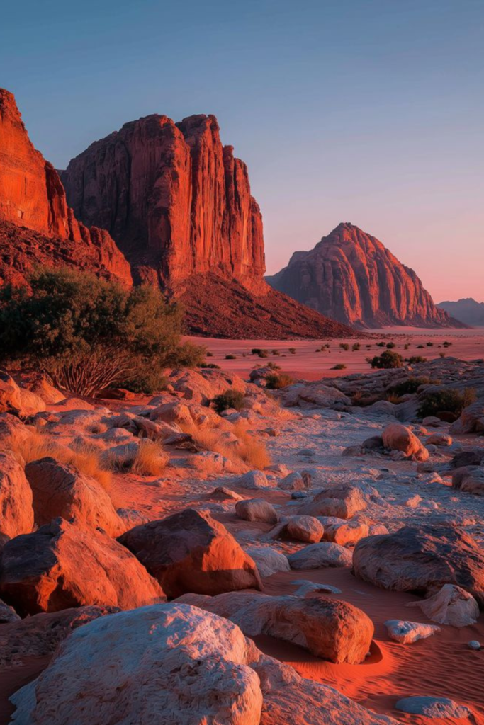 Sunrise and sunset transform the desert into a vibrant display of colors.