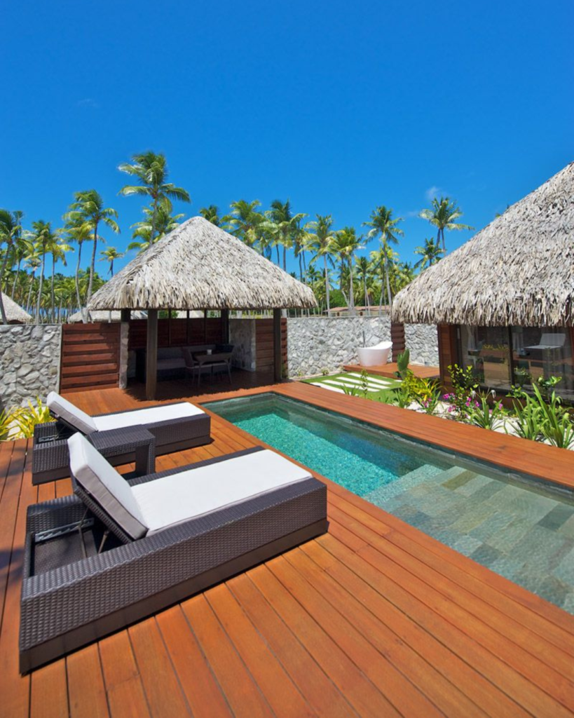 If space equals luxury, this resort wins. The villas here are some of the largest in French Polynesia, with massive decks, private pools, and glass floor panels to watch fish swim beneath you.