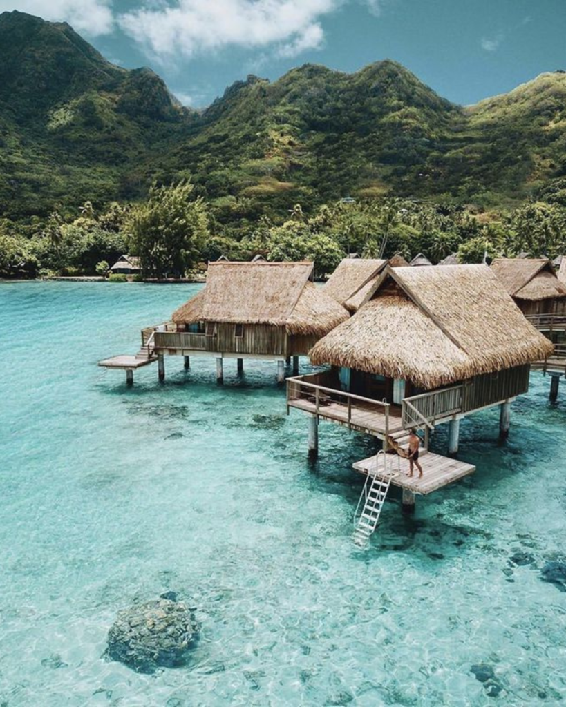 This resort is known for its iconic overwater bungalows and dramatic mountain backdrops. The setting is pure postcard material.