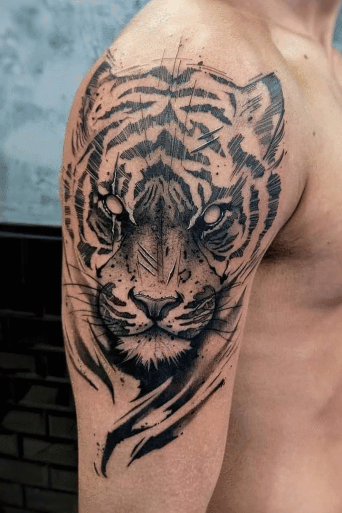 A tiger tattoo on your arm instantly commands attention. Fierce, fearless, and full of raw masculine energy — it symbolizes power, independence, and dominance. The flowing lines of the tiger’s stripes highlight your muscle tone, making your arm look sculpted and strong. Go for a roaring tiger across the forearm or a stalking pose that wraps around the bicep. Add jungle details or smoke for dynamic flair. It’s the ultimate mix of danger and elegance — perfect for bold personalities.