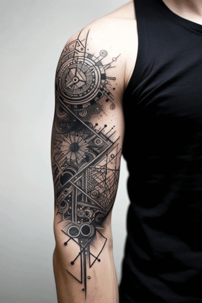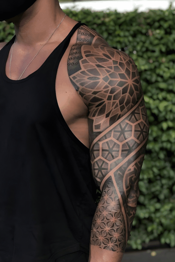 Precision meets creativity. Geometric tattoos bring symmetry and structure to your arm, creating hypnotic patterns that instantly stand out. Think triangles, mandalas, or interlocking lines that wrap perfectly around your forearm. It’s modern art fused with masculine energy. You can go full sleeve with connected shapes or keep it minimal with one bold design. Either way, it shows you appreciate balance — both in life and in style. Smart, sleek, and effortlessly cool.