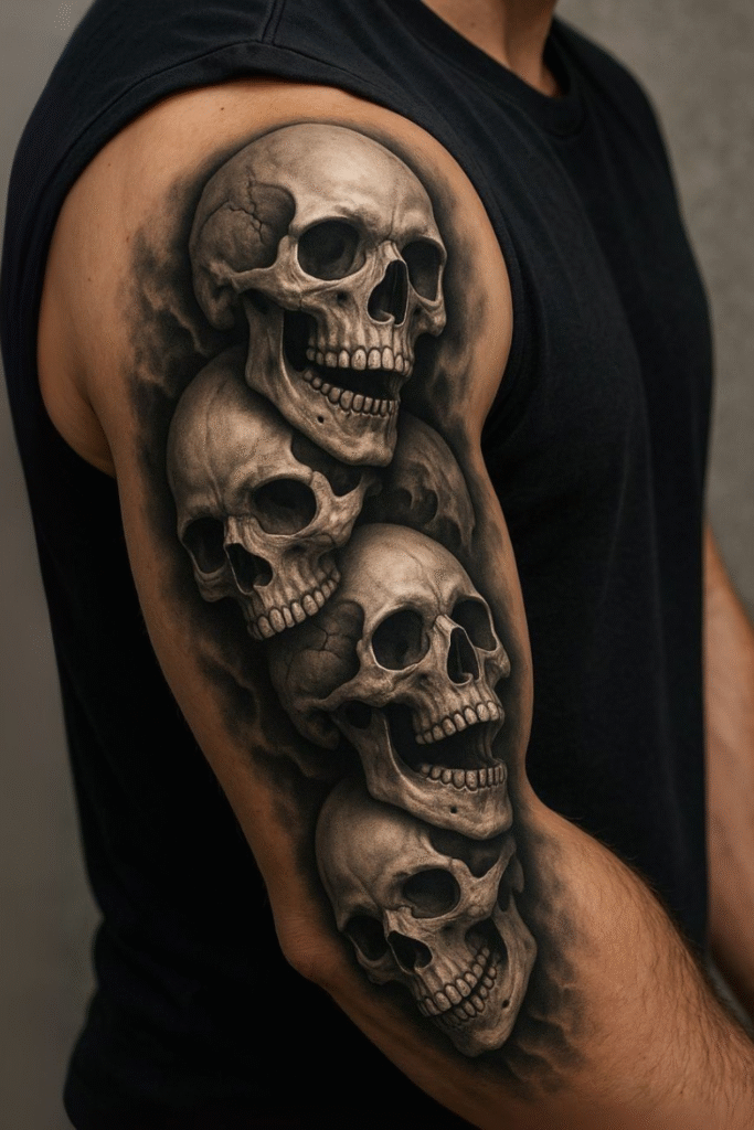 A timeless classic that oozes edge and rebellion. Skull tattoos can be realistic, geometric, or abstract — depending on your vibe. They’re not just dark; they’re about embracing life and the inevitability of death — living fearlessly. Try it on the outer forearm or blend it into a sleeve with roses, snakes, or clock elements for that rugged aesthetic that never fades.