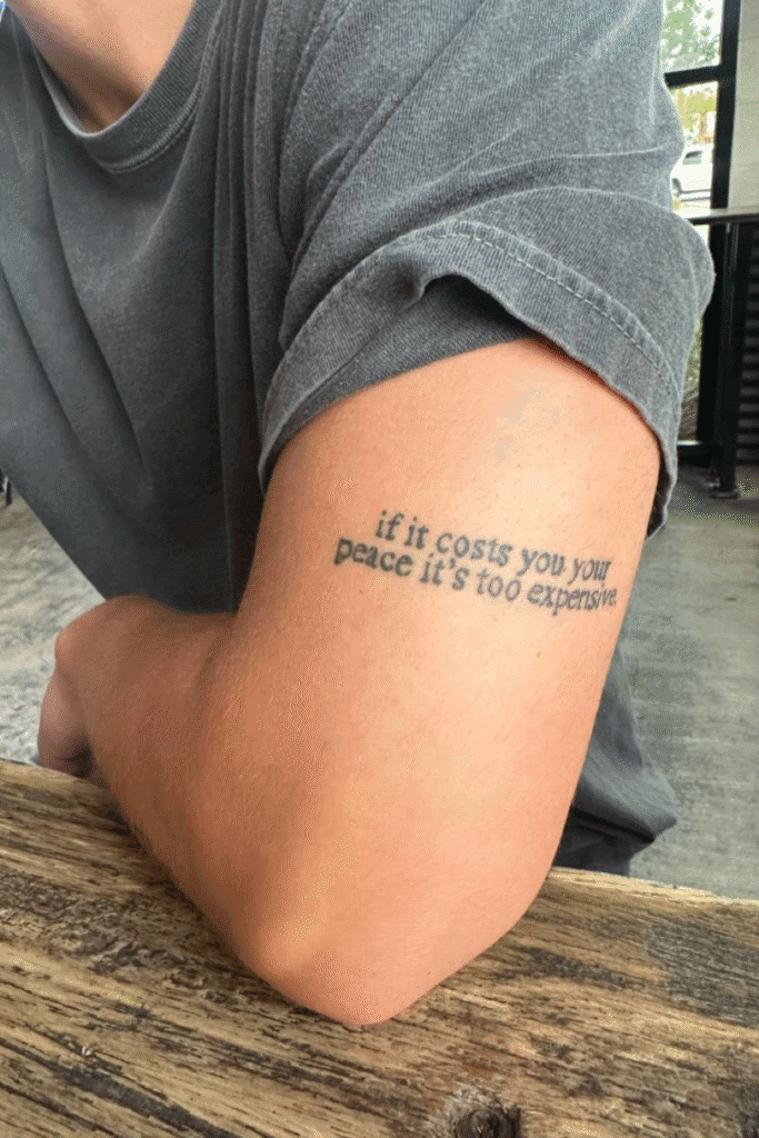 Sometimes, words hit harder than images. A quote tattoo can be short and sharp — like “Stay Humble” or “Never Fold.” Or it can be deeply personal, inked in your own handwriting or a bold font that resonates with your vibe. Place it along the inner forearm, down the tricep, or wrapping the wrist. It’s simple but powerful — a daily reminder of who you are and what you stand for. Meaning always makes the best ink.