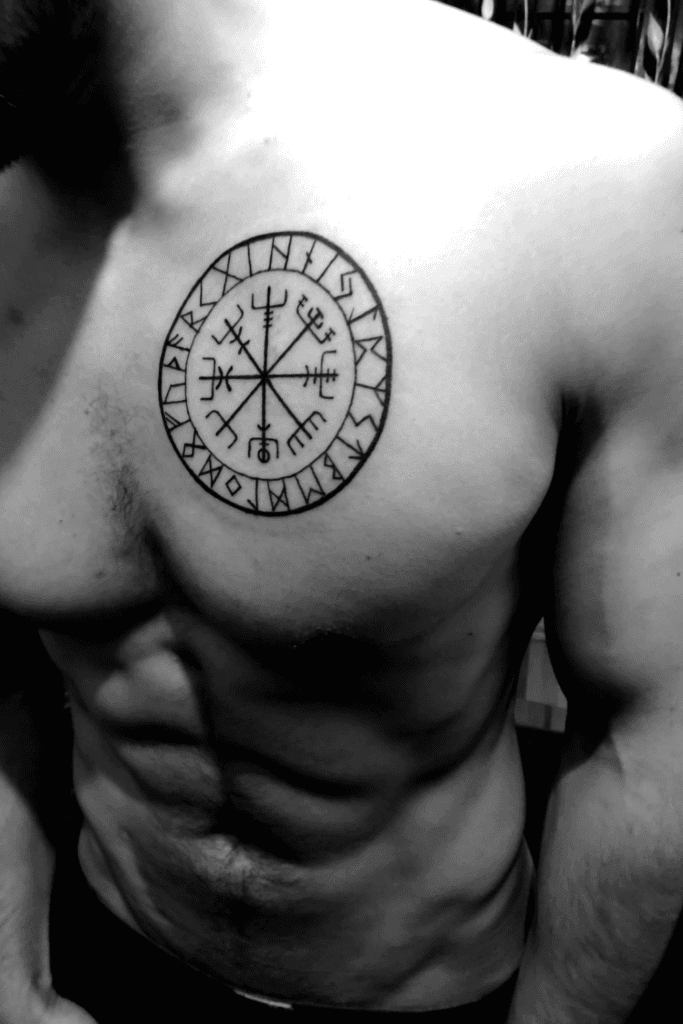 The Vegvisir—known as the Viking Compass—is a powerful symbol of guidance and protection. Men who choose this tattoo often resonate with its message: the strength to stay on your path, no matter how rough the journey gets. Centered over the chest, the compass looks bold with rune-like branches radiating outward. Artists often add Norse knotwork, ravens, weathered textures, or geometric borders to elevate the design. Whether honoring Nordic heritage or connecting with the symbolism of resilience, this tattoo feels ancient, mystical, and empowering. It’s a standout piece that sits perfectly at the core of your body.