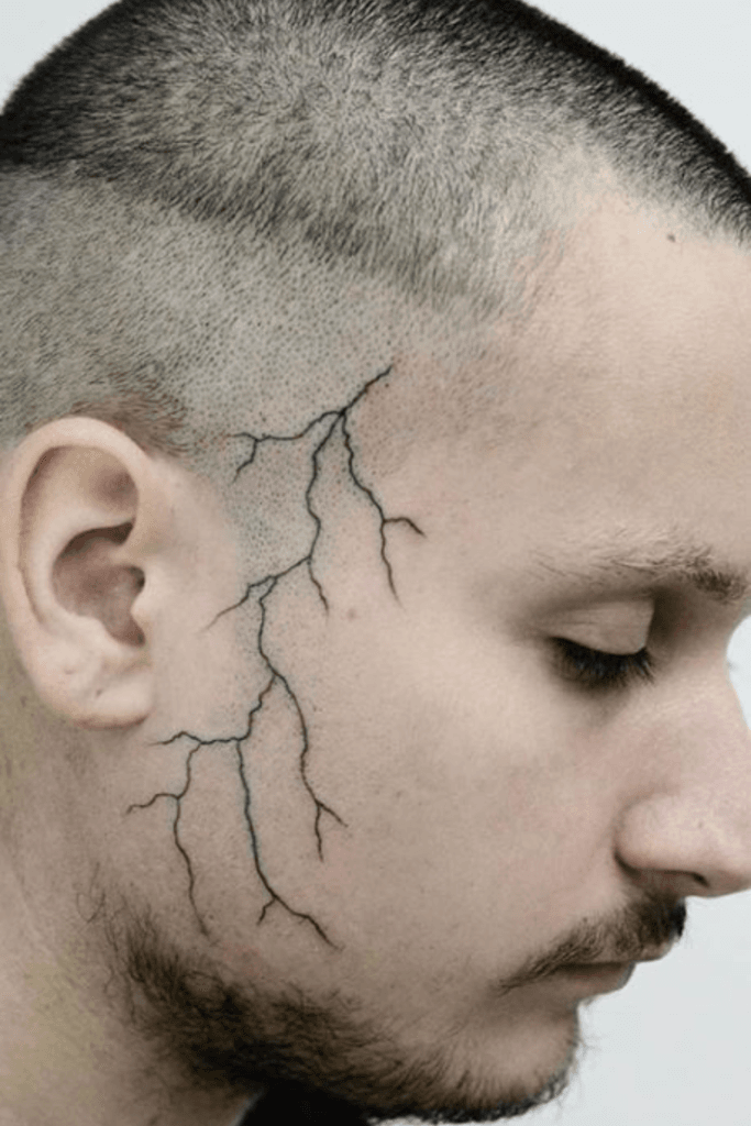A lightning bolt face tattoo screams intensity, speed, and energy. It represents unstoppable drive, fearlessness, and the power to strike when necessary. For many men, it symbolizes sudden change, strength in adversity, and the courage to act fast. Positioned under the eye or on the cheek, it instantly adds edge and attitude. Inspired by warriors, comic legends, and rebellious icons, it carries a sense of danger and confidence. This tattoo is popular among men who see themselves as leaders, not followers; risk-takers who live life boldly. It’s sharp, dramatic, and unforgettable—perfect for those who thrive under pressure and never back down.
