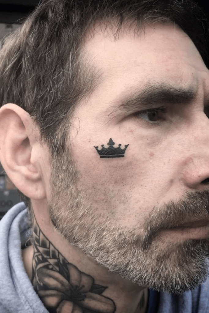 A crown tattoo on the cheek or temple symbolizes dominance, power, royalty, and self-respect. It tells the world, “I know my worth and lead my own life.” Crowns represent kingship, ambition, and authority. Men who choose this tattoo see themselves as rulers of their path—never bowing, never settling. It’s bold, majestic, and visually striking. Some pair it with words like “KING,” dates, or initials. It reflects winning mindset, confidence, and refusal to live small. A crown tattoo isn’t just decoration; it’s a declaration of status, mindset, and the inner king energy that refuses to be tamed.