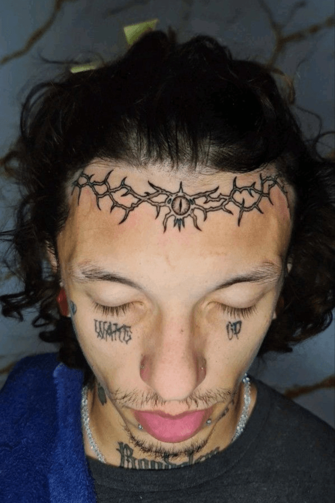 A crown of thorns tattoo symbolizes sacrifice, endurance, spiritual strength, and overcoming suffering. It represents pain that transformed into wisdom. Men choose it for deep emotional and spiritual meaning. Wrapped around the forehead or cheek, it looks dramatic and intense. This tattoo speaks faith, resilience, and survival. It represents battles won, lessons learned, and unwavering inner power.