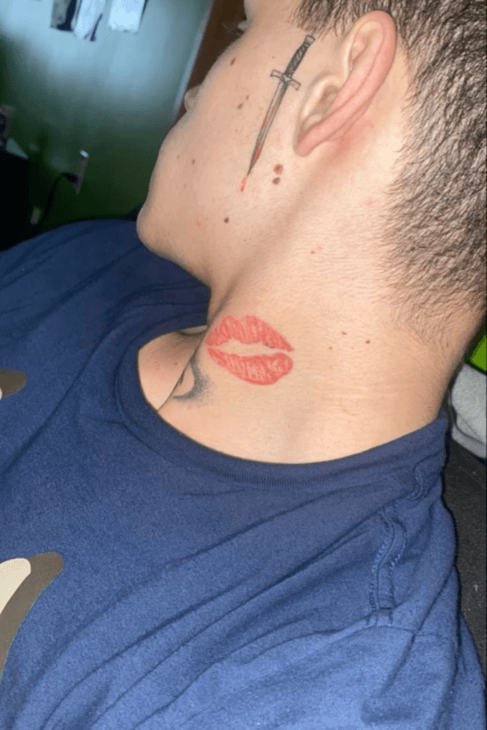 A sword or dagger on the face radiates strength, warlike energy, and unbreakable spirit. It stands for courage, readiness to fight, and protection of honor. For many men, it symbolizes surviving battles, defeating enemies, and overcoming inner demons. Sharp, striking, and masculine, this tattoo demands attention. Placed down the cheek or near the eye, it enhances facial intensity. It represents bravery, warrior mentality, and willingness to defend what matters. A dagger tattoo says life hasn’t been easy, but strength always wins. It’s bold, dangerous, meaningful, and unforgettable—perfect for men built for challenges and victory.